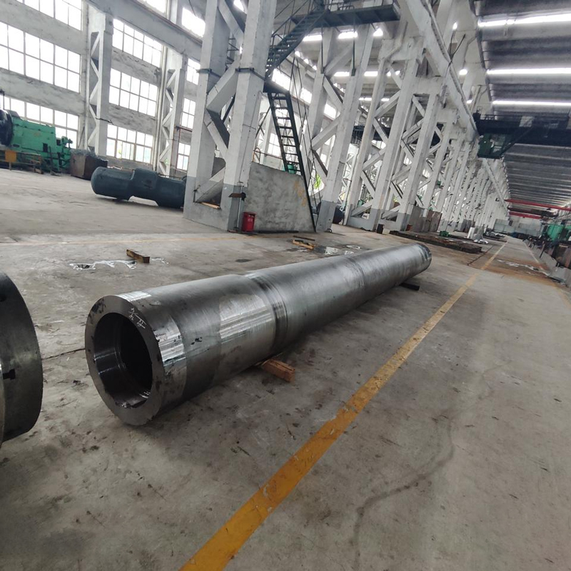 Данное изделие представляет собой корпус верхнего валка для бумагоделательного оборудования, изготовленную из стали марки 9Cr2Mo. Сталь 9Cr2Mo относится к легированным инструментальным сталям, обладает высокой твердостью и износостойкостью, что позволяет ей длительное время выдерживать трение между бумагой и поверхностью валка в процессе производства бумаги, обеспечивая сохранение плоскостности и чистоты поверхности валка. Одновременно с этим, она обладает хорошей прочностью и вязкостью, способна выдерживать нагрузки, такие как натяжение бумажного полотна и давление прессования, не подвержена деформации или разрушению, что гарантирует непрерывное и стабильное ведение бумажного производства, повышает качество бумаги и производственную эффективность, являясь одним из ключевых компонентов бумагоделательного оборудования.